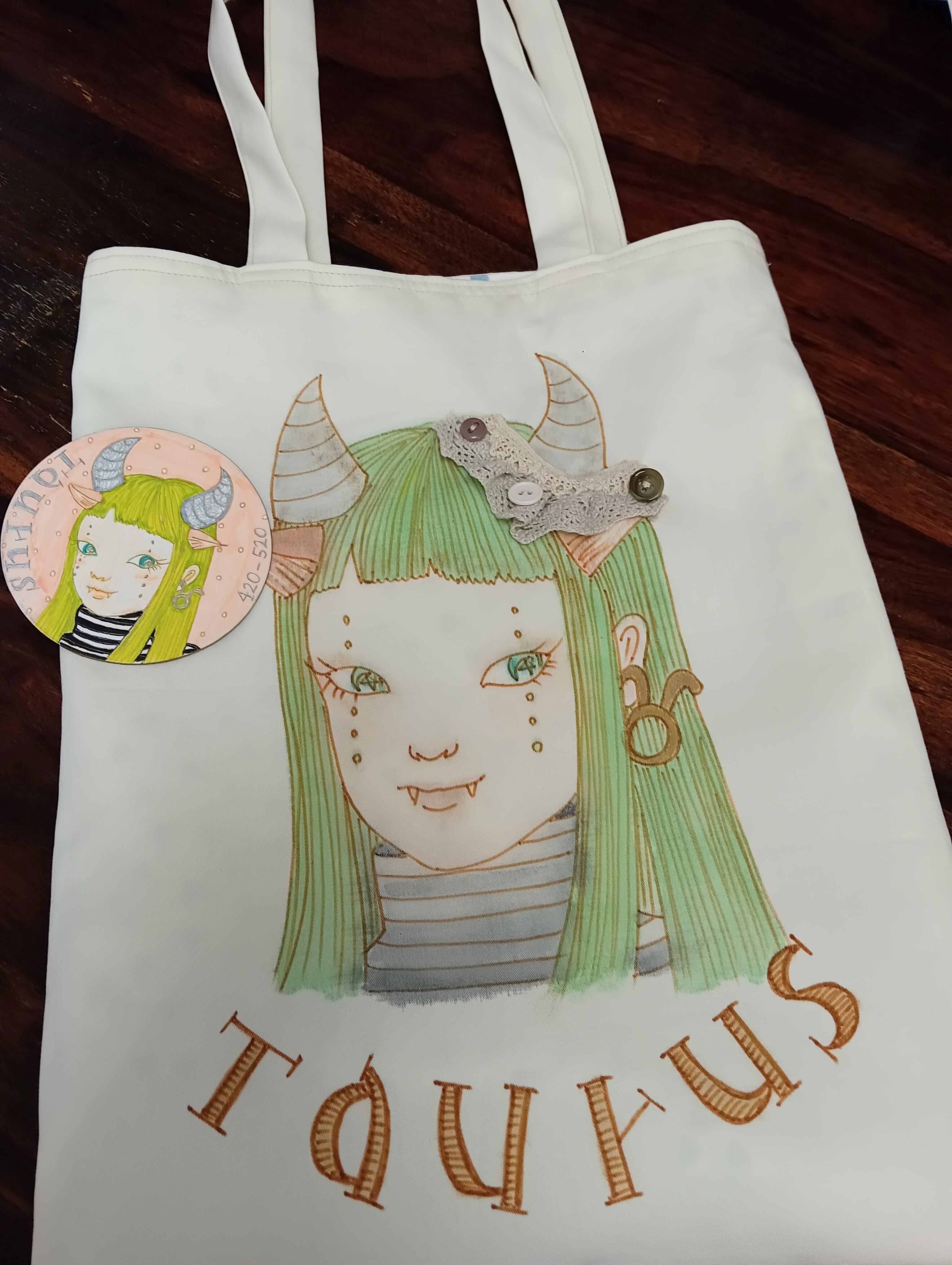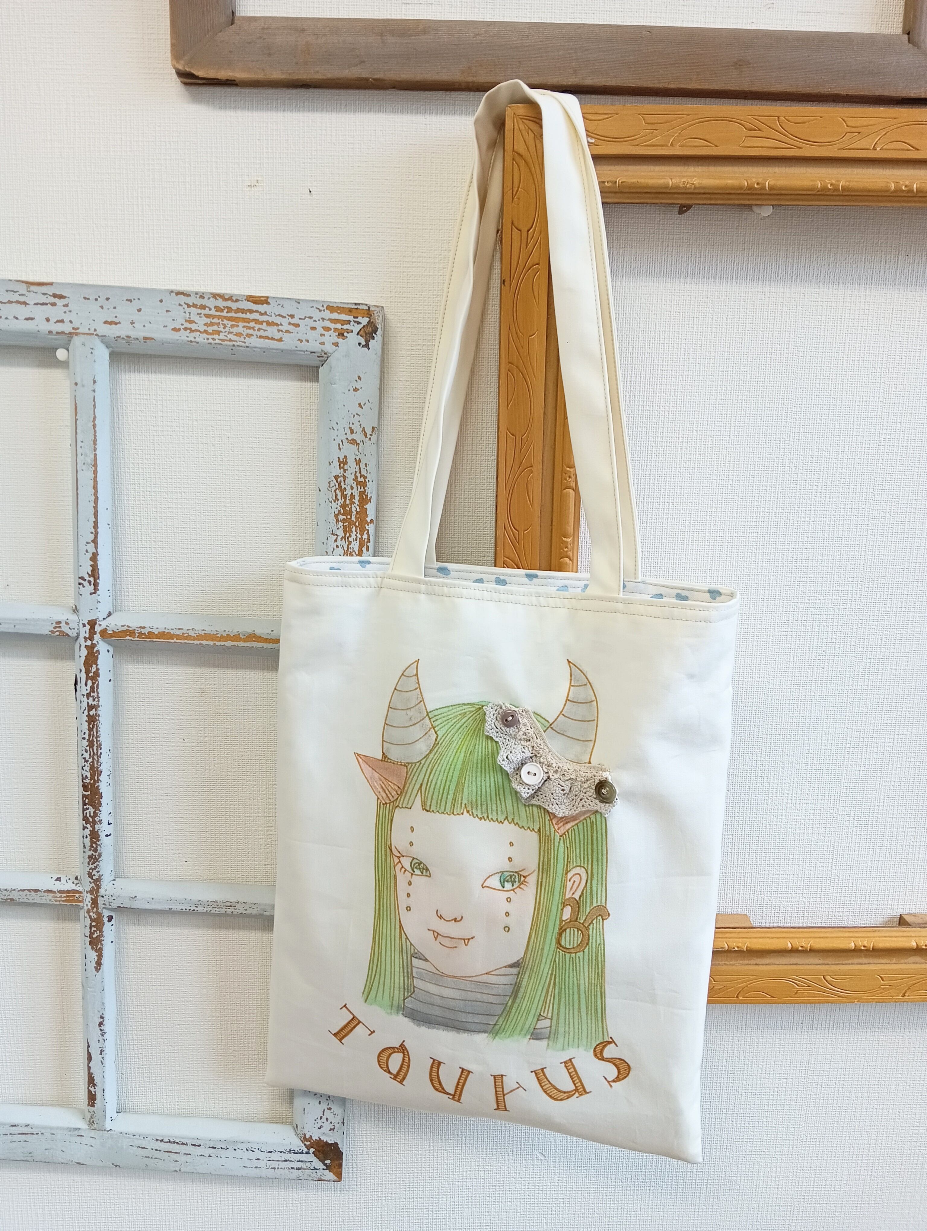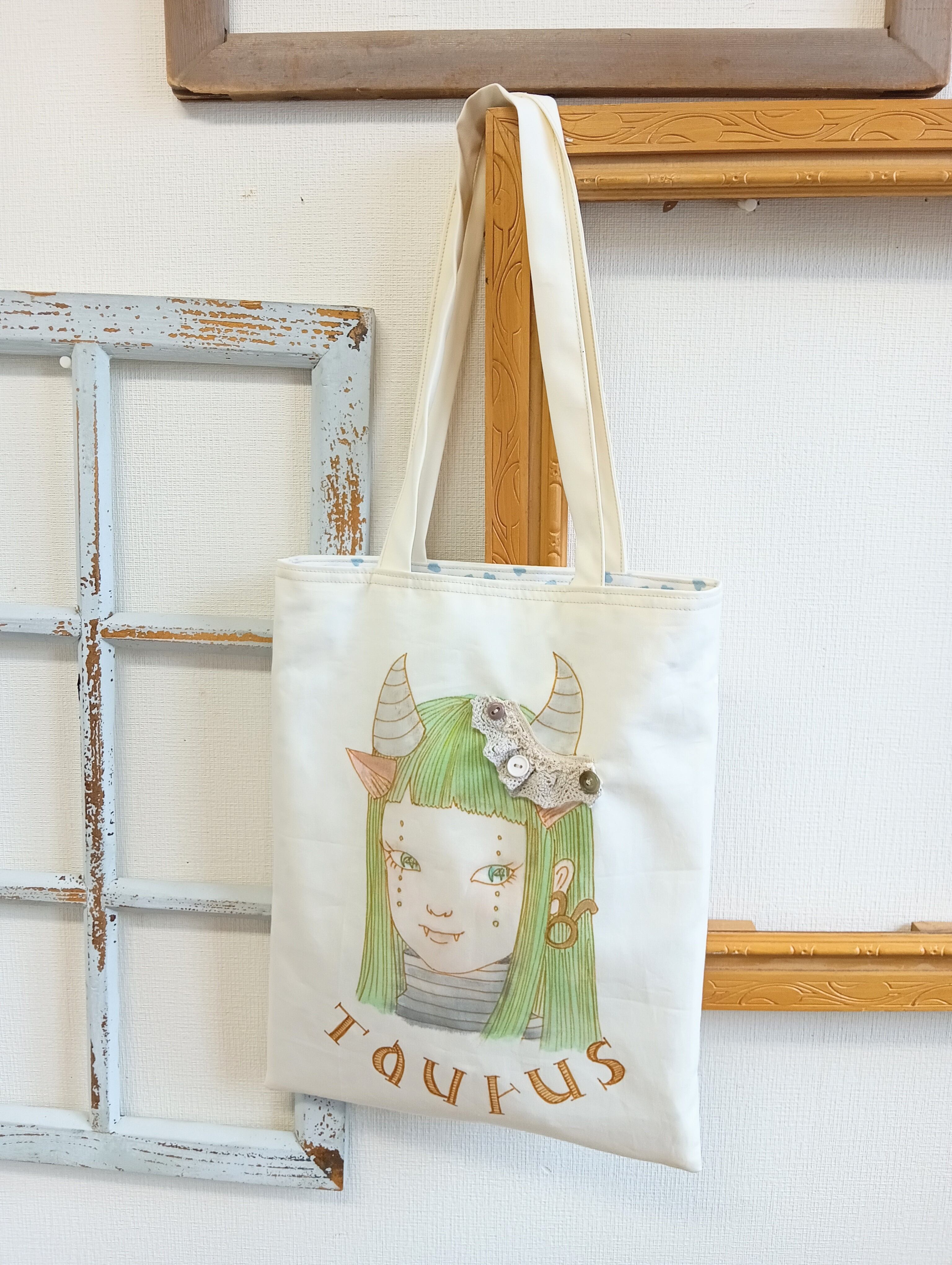 12星座シリーズ★牡牛座トートバック(ライトベージュ)手書きイラスト1点もの