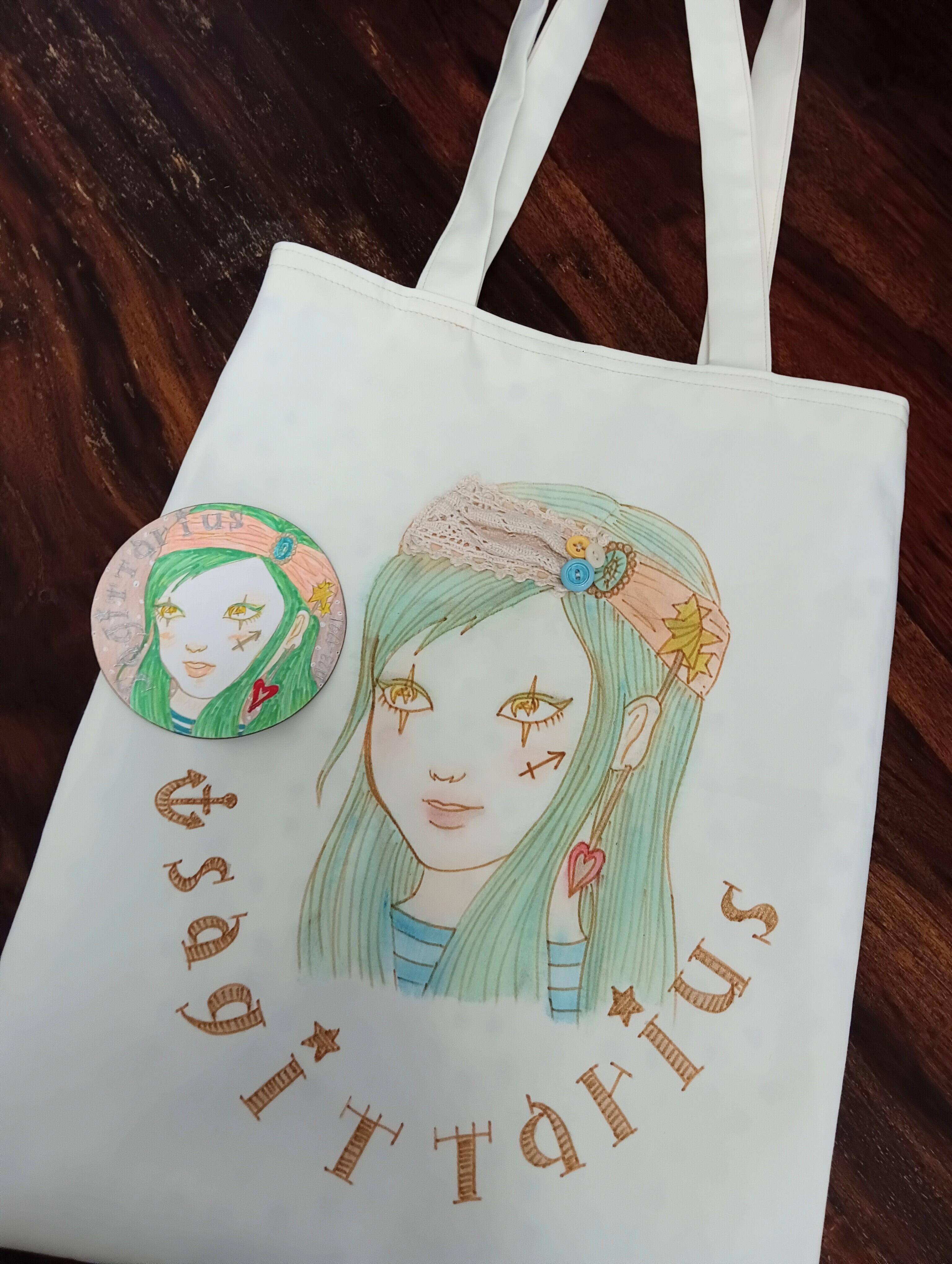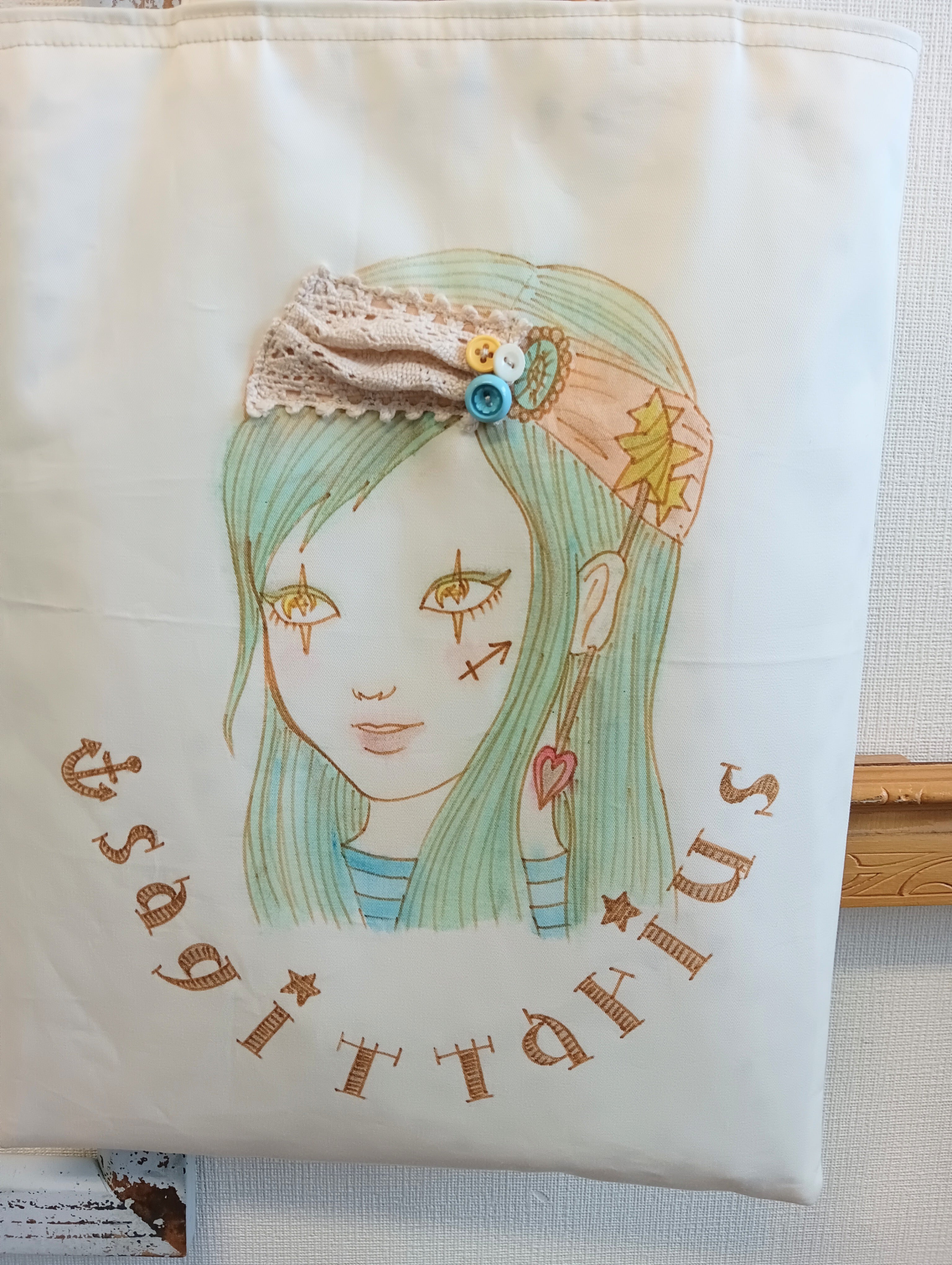 12星座シリーズ★射手座トートバック(ライトベージュ)手書きイラスト1点もの