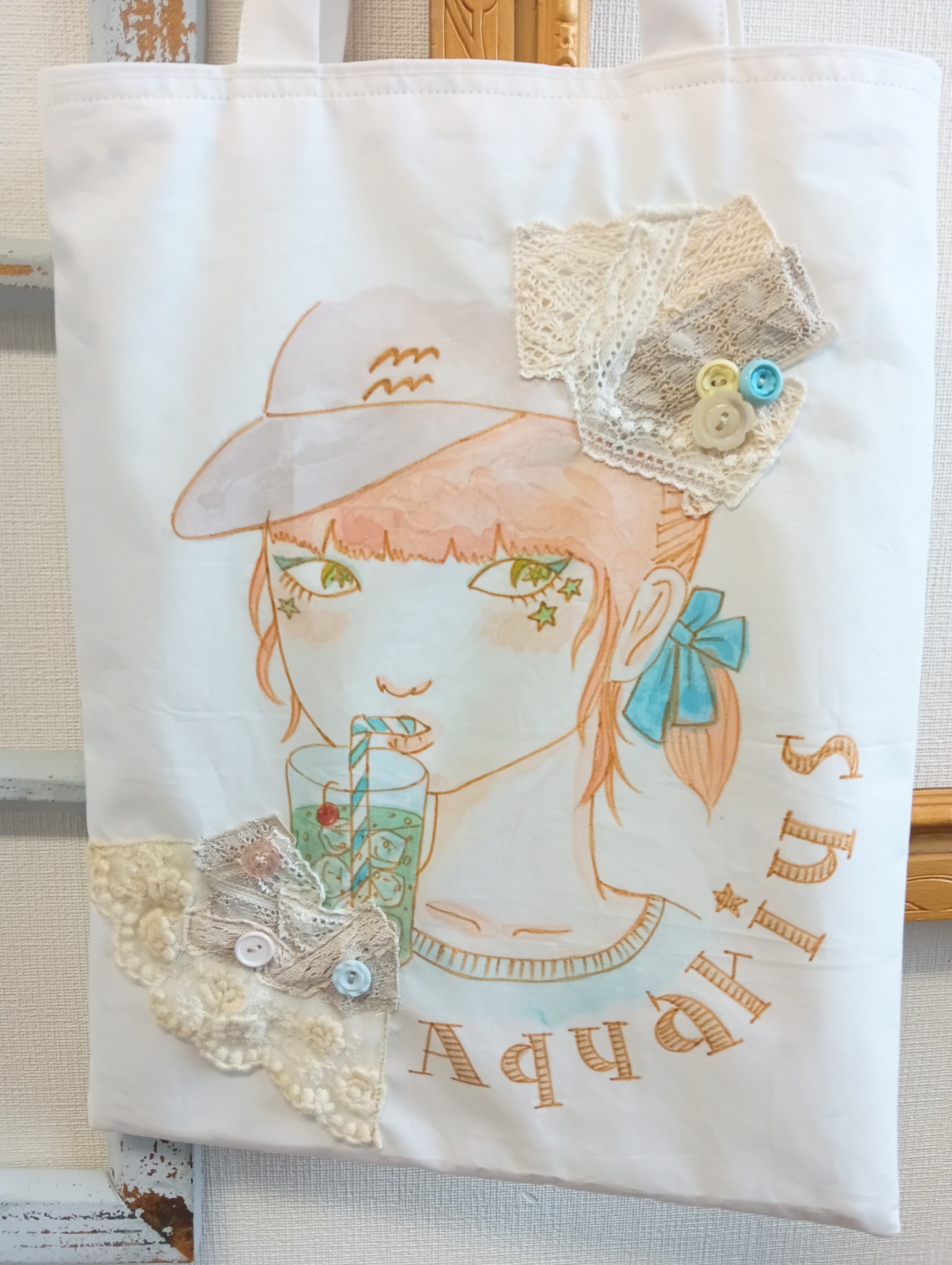 12星座シリーズ★水瓶座トートバック(ホワイト)手書きイラスト1点もの