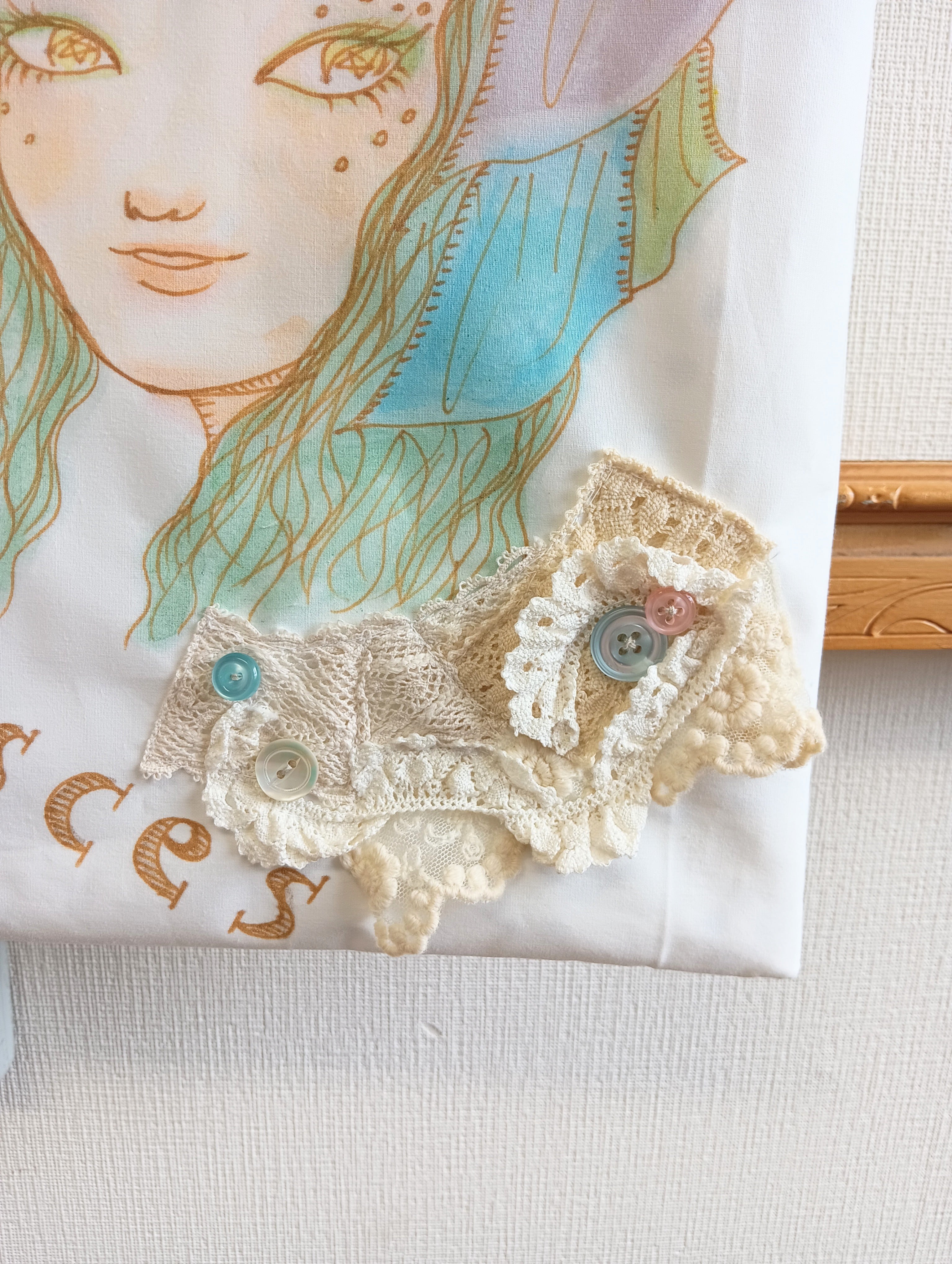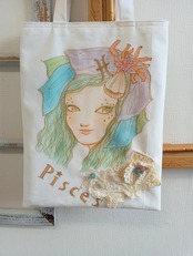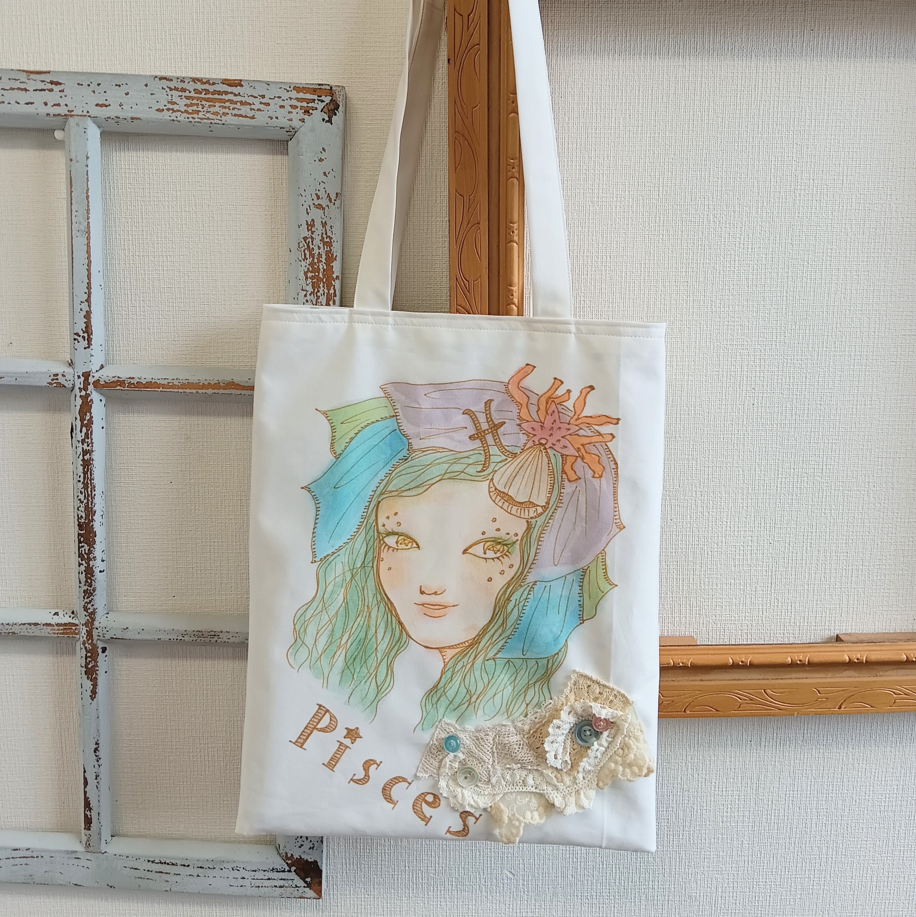 12星座シリーズ★魚座トートバック(ホワイト)手書きイラスト1点もの