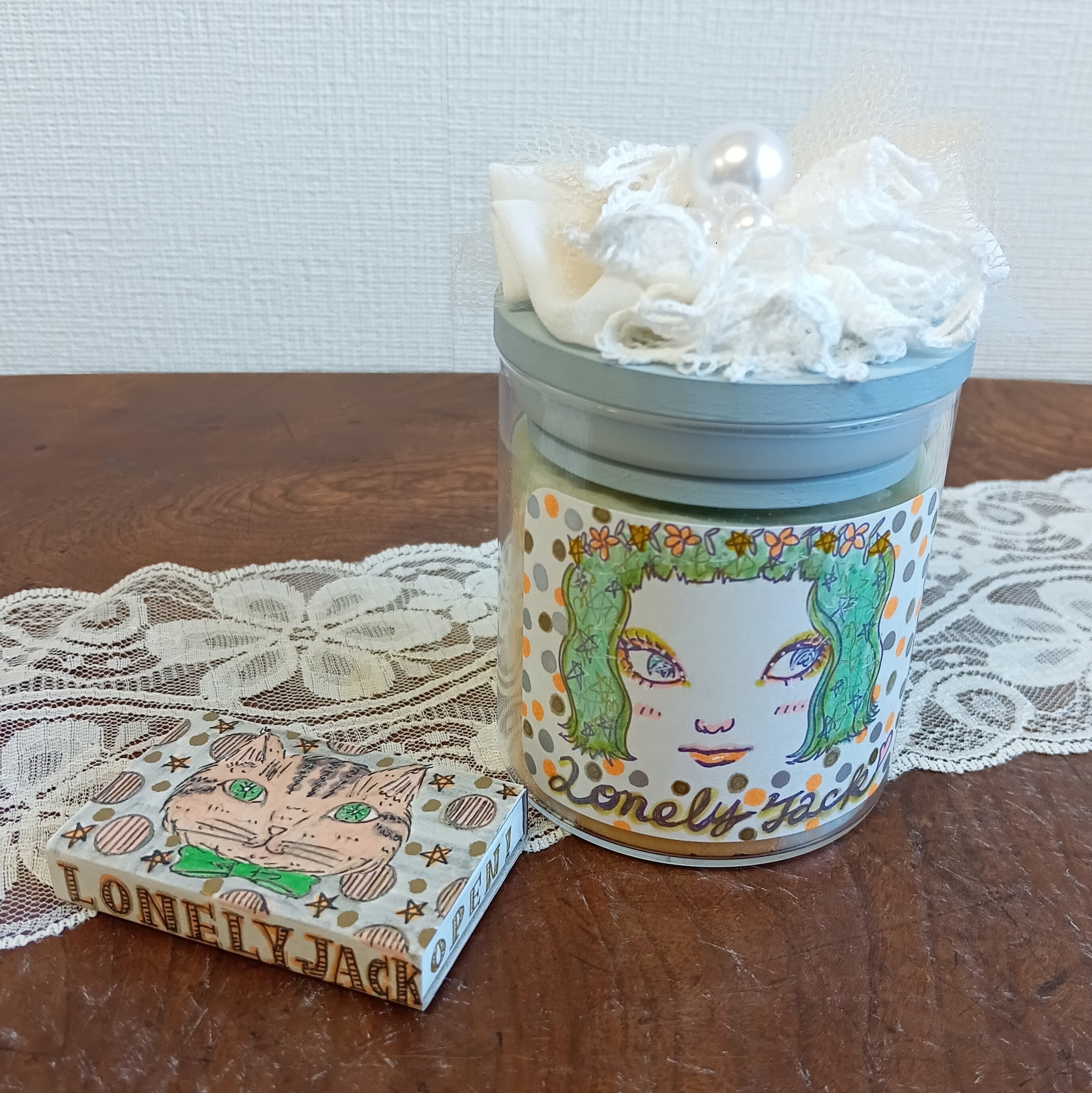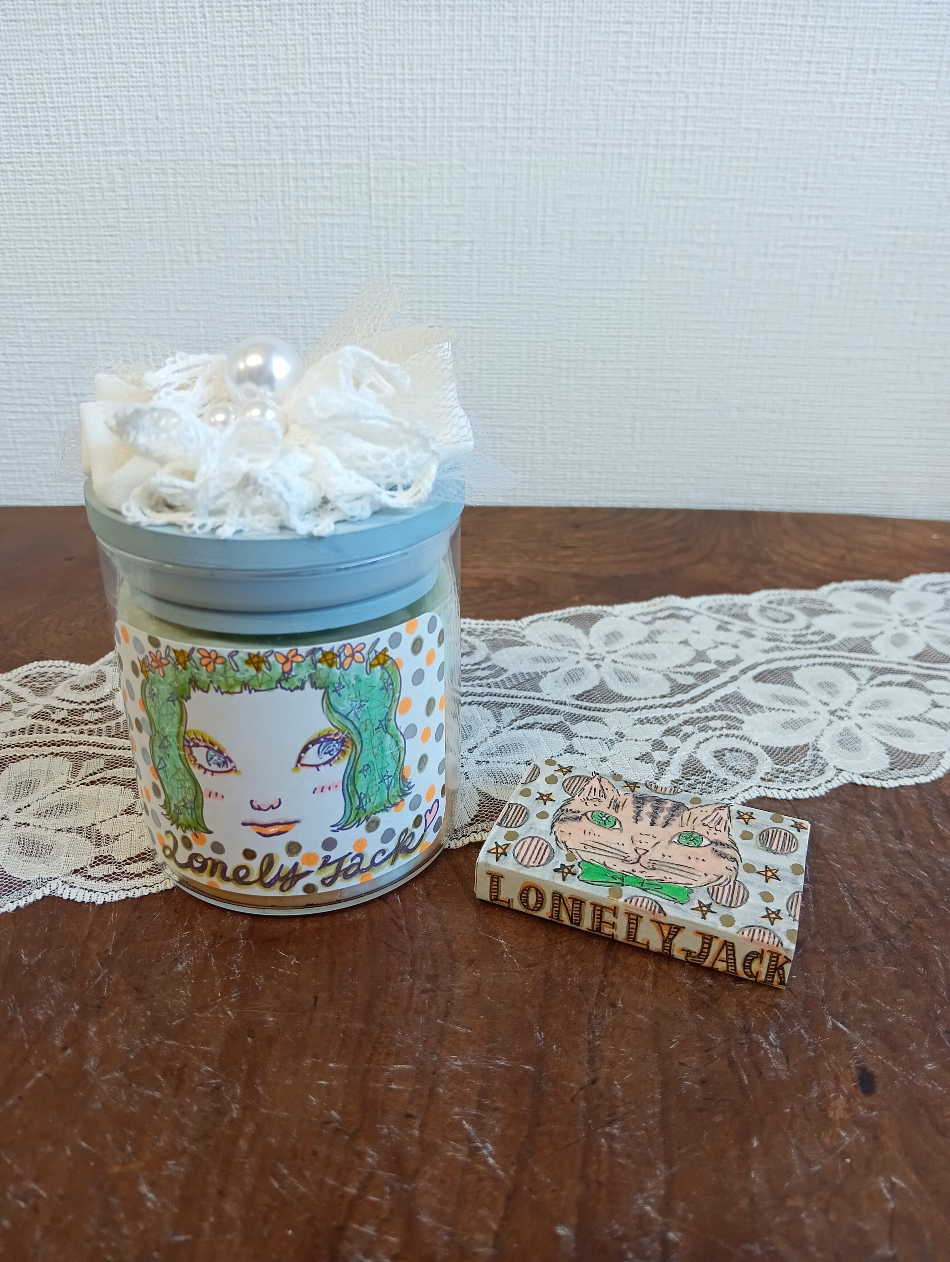 イラストも手書きの女の子イラストで一つ一つ表情が違って可愛いです。全て一点もの、写真の作品をお送りします。
