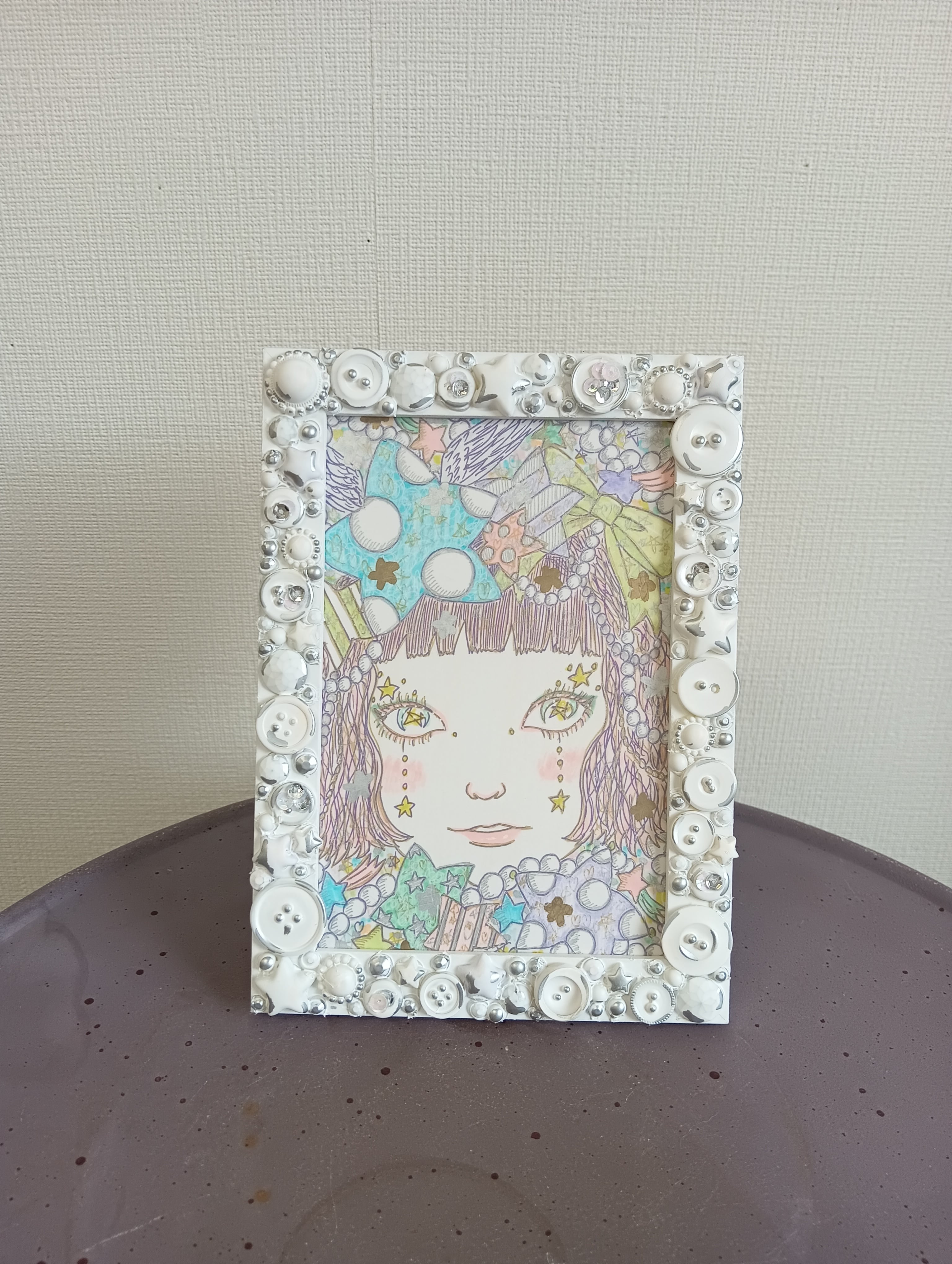 【縁&原画セット】キラキラ可愛い★額縁B幅太タイプ&手書きポストカードセット (星の天使)